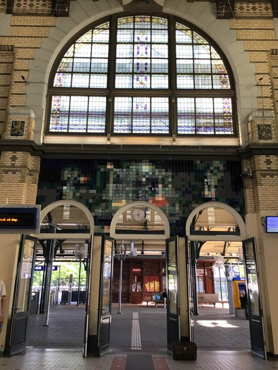Das mit der Aussprache ist so eine Sache, nicht nur, dass meine Zielbahnhöfe nun je einen holländischen und einen friesischen Namen haben, die Aussprache gelingt mir nicht immer so, dass mir jemand weiterhelfen kann. In Leeuwarden (gesprochen ungefähr Lääiworden, friesisch Ljouwert, hört sich an wie Louett) wirkt der karierte Koffer in der großen Bahnhofshalle ganz verloren. Aber die Halle feiert das Bahnreisen ungemein. Eine darf nur nicht ihr Ticket verbummeln, sonst kommt sie nicht vom Bahnsteig runter. Meins war auf dem IPad und ich nahm freundschaftliche polizeiliche Hilfe in Anspruch.