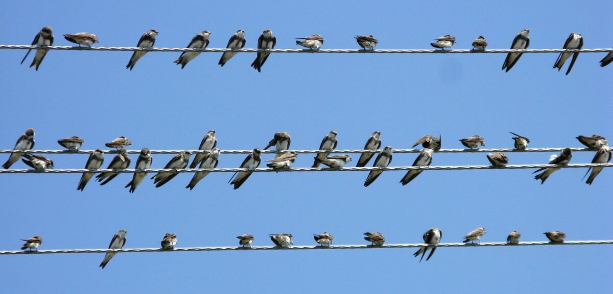 Schreibe mit meinem Füller, der mich auf allen Reisen begleitet, samt Tintenfass, zu Füßen der Vrouwe van Stavoren, an diesem Sonntag um 07:00: „Hatte noch nie einen besseren Platz für meine heiligen Morgenseiten: ein ganz leichter Wind – eine weiße Yacht mit einem schwarzen Bordhund läuft aus – lässt das Wasser gegen die Rümpfe plätschern. Die kleinen Schwalben (Uferschwalben?) kreisen ein Stück über den Masten der Traditionsschiffe an der Nordseite des Hafens“ – und da muss eine Biologin erstmal nachgucken, wegen der Schwalben. Sie nimmt ja die freilebenden Tiere mindestens so wichtig wie wilde und halbwilde Menschen… Also: es sind Uferschwalben (Riparia riparia). Wie die anderen Schwalbenarten kommunizieren sie unentwegt miteinander, in einer großen Bandbreite von Lauten, und haben ein sehr sensibles Gehör; ernähren sich von Fluginsekten, brüten in Westeuropa und ziehen nach Süden. Die Uferschwalbe, mit höchstens 13 Zentimetern die kleinste Schwalbenart, ist ein Weitstreckenzieher, sie sucht Winterquartiere in Nordwest- und Zentralafrika und in Südameriak auf. Wir Menschen rücken ihr ziemlich brutal auf den Pelz, aufs Gefieder, vernichten am laufenden Band Brutplätze der Uferschwalben wie lehmige oder feinsandige Steilufer und Abbruchkanten – zum Beispiel für noch mehr Spekulationsobjekte – pardon, offiziell heißt das Ferienhaus mit Meerblick. Dabei ist so eine Uferschwalben-Kolonie weitaus interessanter als noch mehr „boxes on the hillside“. Die Tiere graben mit dem Schnabel armtiefe Brutröhren, sie fliegen mit bis zu 50 Kilometer pro Stunde, trinken und baden im Flug und sind super gesellig. Ganz anders als viele Bewohner von Betonkästen am Ufer. Zwar ist die Uferschwalbe gesetzlich geschützt, aber fürs Überleben dieser Art ist wohl Seinlassen in großem und großzügigem Stil erforderlich. Es geht ja auf diesem Planeten nicht nur um immer vollere Konten, oder?