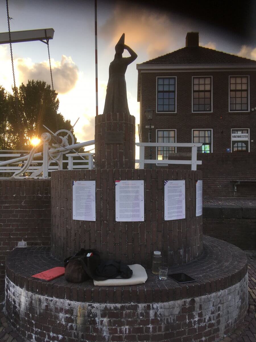 aber vorher verabschiede ich mich ausführlich und mehr als zehn Stunden lang von diesem Ort und seinen Zeiten – Gezeiten hatte Stavoren auch mal – ; seiner Geschichte und den Geschichten von heute und morgen. Dafür stehe ich früh auf, lange bevor die ersten Mittsegler*innen von den Plattbodenbooten der braunen Touristenflotte geklettert sind, mit Handtuch über der Schulter. So habe ich einen ganz besonderen, einvernehmlich einsamen Morgen.