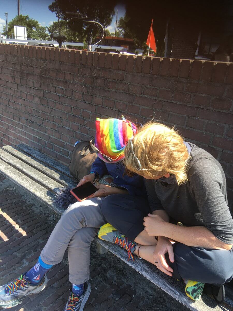 Auch auf dem Bahnhofsvorplatz wurde mir charmant-friesische Hilfe zuteil. Denis (18 Jahre) und Maria (17 Jahre) fuhren mich in die binnenstad. Denis saß betont locker am Steuer und fragte mich, ob mir denn seine Sonnenbrille gefalle. Das tat sie. Er freute sich und sagte, Maria fände, er sähe damit aus wie ein Vater. Auf meine diesbezügliche Nachfrage gab er zu, er würde gerne bald Vater werden. Aber ob Maria, Jahrgang 2007, allerdings mit den Gören zu Hause bleiben will, wie er es sich vorstellt, blieb ungeklärt. Ich schlug bereits seit den 1980ern erprobte, eher kollektive Modelle vor: Bildet Banden!