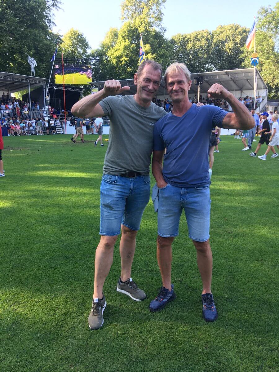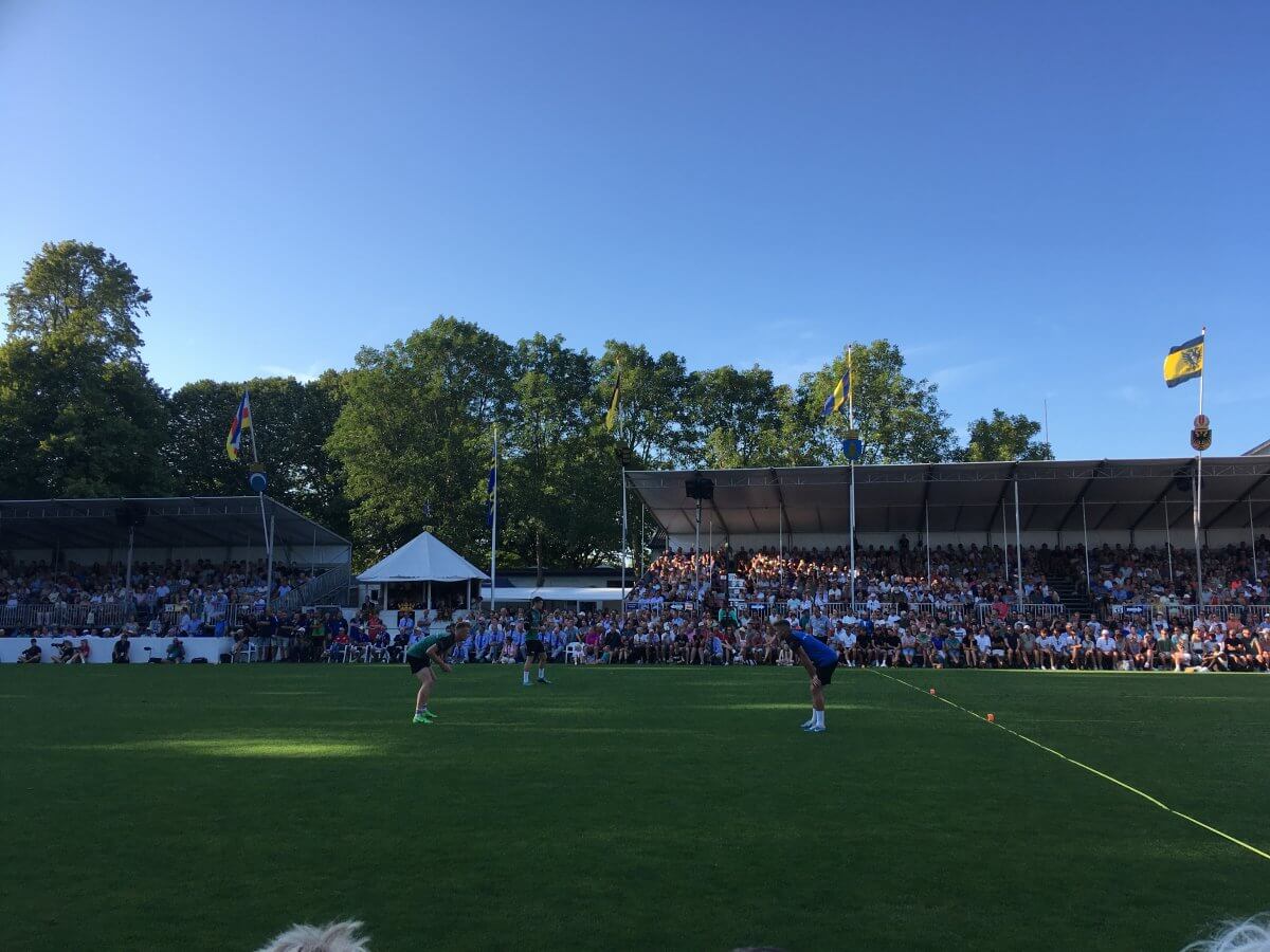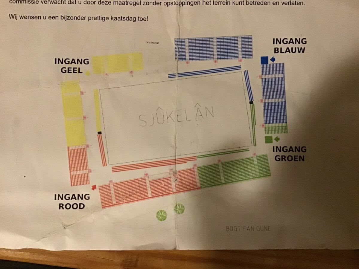Hatte prettige PC. Nach der Pause darf ich in die vorderste Reihe aufrücken und dann singen Jan aus Utrecht und seine Familie, Tochter und Freund (dem sie auf der Fahrt eine Stunde lang die Regeln und das Verfahren des Turniers erklärt hatte) neben mir und die übrigen Zehntausend stehend, begleitet von einer Blaskapelle das Frysk Folksliet, das Lied des friesischen Volkes. War total ergriffen und kam mir ziemlich außerfriesisch – wenn auch wohlgelitten und willkommen – vor zwischen all den eher schmalen und hochgewachsenen Menschen mit oftmals blonden oder rötlichen Locken.