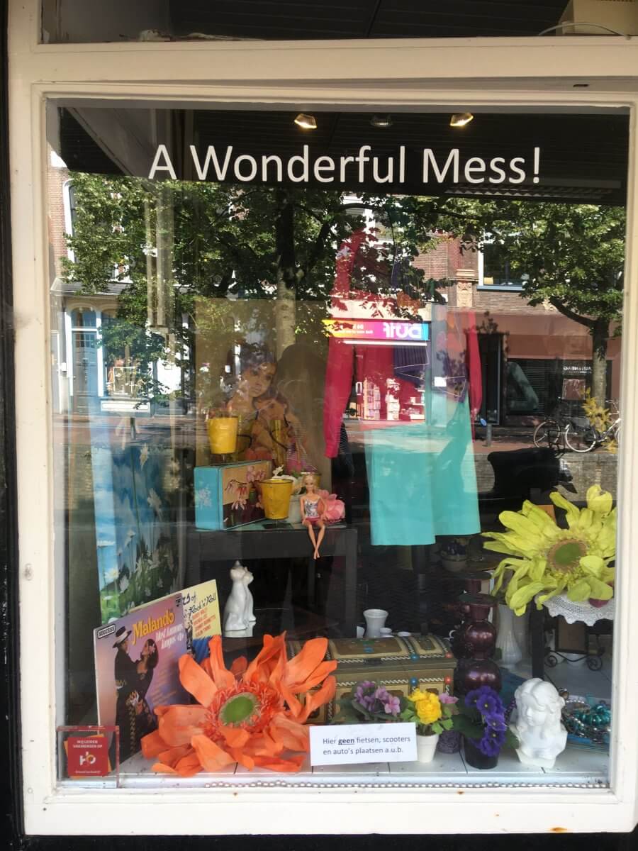 Aber wir wollen ja erstmal nicht naschen, sondern zum Markt. Dazu muss ich rechts einbiegen in den Voorstreek. Und finde einen Shop voll nach meinem Geschmack – bin bekennende Anhängerin der Parole: Lieber schlampig glücklich als ordentlich gestresst, denn nicht jede Ordnung finde ich schön, sinnvoll oder gar liebenswürdig.