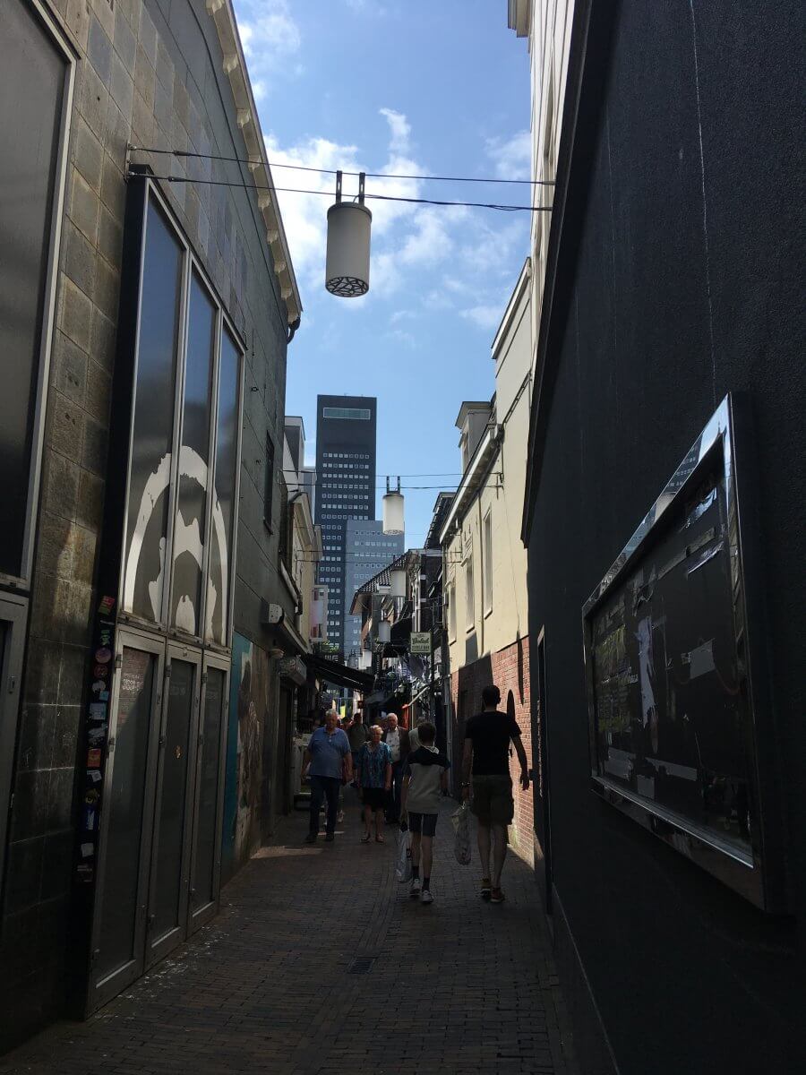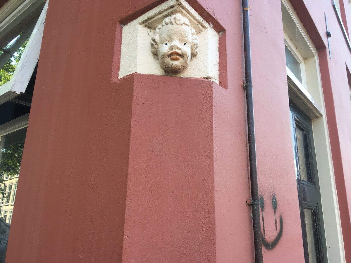 Im Oude Lombardsteeg ändert sich etwas, wie immer dort, wo Menschen sich auf Augenhöhe zu Fuß begegnen – will jetzt nicht mit meiner Wanderung unter ausschließlich Fußgänger*innen durch nepalesische Dörfer anfangen, das führt wirklich zu weit, wenn auch zu Fuß. Vor dem Bioladen in diesem Stieg steht an diesem heißen Tag, kostenlos angeboten, eiskaltes Zitronenwasser. Seine Betreiberin lässt mich ohne Weiteres über eine ganz steile Stiege mit Kopfeinziehen ins Obergeschoss zur Toilette klettern. Hole mir Müsli – als alte Müslifresserin, wir wurden damals hat belächelt:) – mit ganz vielen Zutaten, bestes Kraftfutter fürs Flanieren und so. Auf dem Markt zieht es mich zunächst zum Käse. Bekomme Oud Zwart, alten Schwarzen, innen drin lange gereift (oud = alt), außen mit schwarzer Hülle. Diesen mindestens ein Jahr gereiften Gouda brösle ich in den folgenden Tagen nur so weg, und teile ihn mit meinen neuen Bekannten.