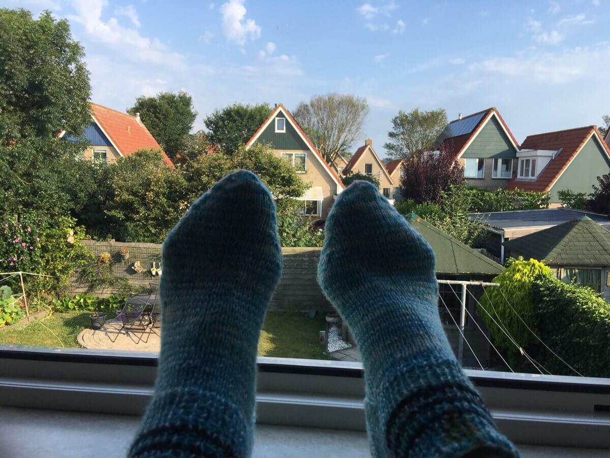 Reisesocken, nicht aus Ziegenwolle gestrickt von Mary Lorusso (www.friseur-altona.de); sie haben mittlerweile Ameland erreicht.
