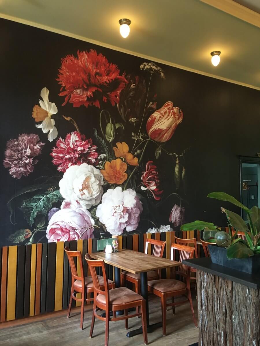 Nach unserem Bootsbummel folgen wir der nächsten Café-Empfehlung der versierten Kartenverkäuferen für die Prahmfahrten: DE KOPEREN TUIN. Es befindet sich nördlichen der Innenstadt, wo auch auf dem heutigen Stadtplan noch die Zacken des ehemaligen Festungsgrabens zu erkennen sind.