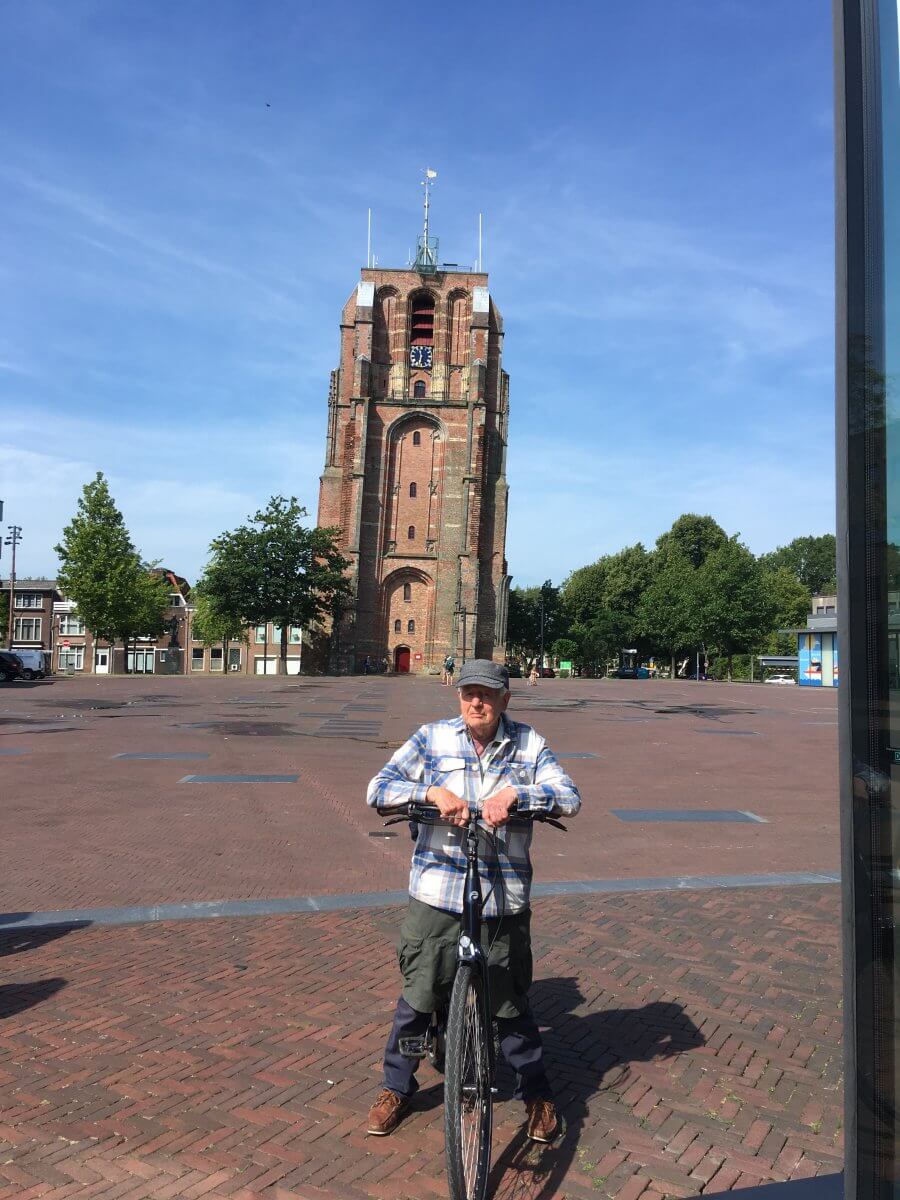 De Oldehove, der schiefe und krumme Turm von Leeuwarden, und Ian, startklar für die nächste Fryslân-Expedition