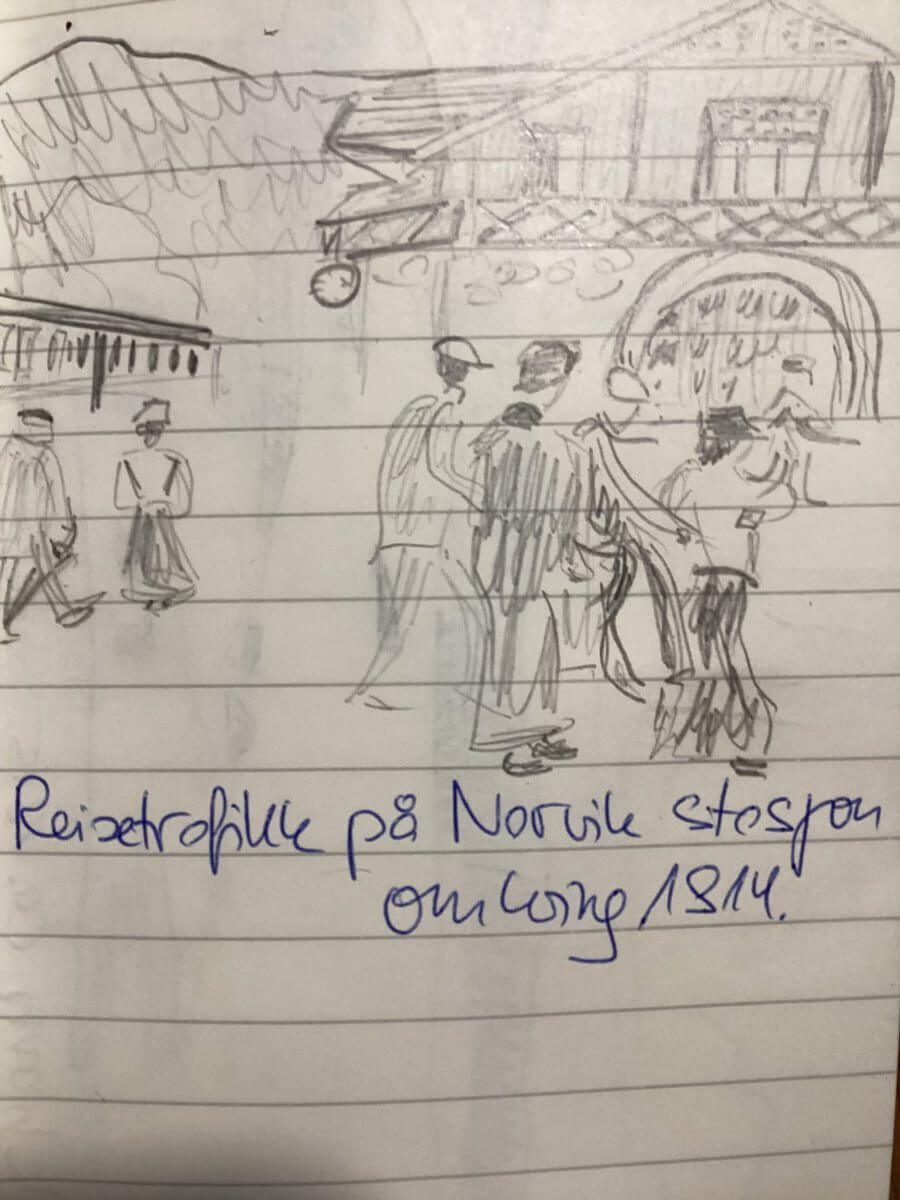 Drinnen gab es vafler med brunost og syltetøy. Vafler sind klar, brunost wurde ganz früher in eisernen Töpfen aus der Molke von Ziegenmilch (geitost ist Ziegenkäse) gekocht und verschaffte den Norweger*innen geregelte Eisenzufuhr. Die braune Farbe bekommt dieser Käse, der sich nur mit einem Hobel zerlegen lässt, bis heute vom karamellisierten Milchzucker. Hjemmelaget, hausgemacht, wie unten, ist er fast nie.