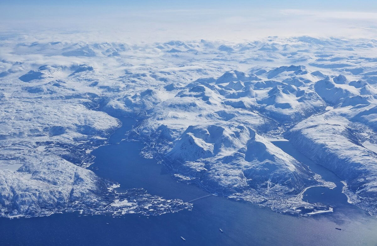 Die Berge im Hinterland reichen bis nach Schweden. Narvikfjellet, das Narvikgebirge, erhebt sich in der Stadt, zwischen Rombaken/Rombaksfjord (Ruoppák) mit der 2018 eröffneten Hålogaland-Brücke zur Linken und Beisfjord zur Rechten. Bjørn Christian Tørrissen