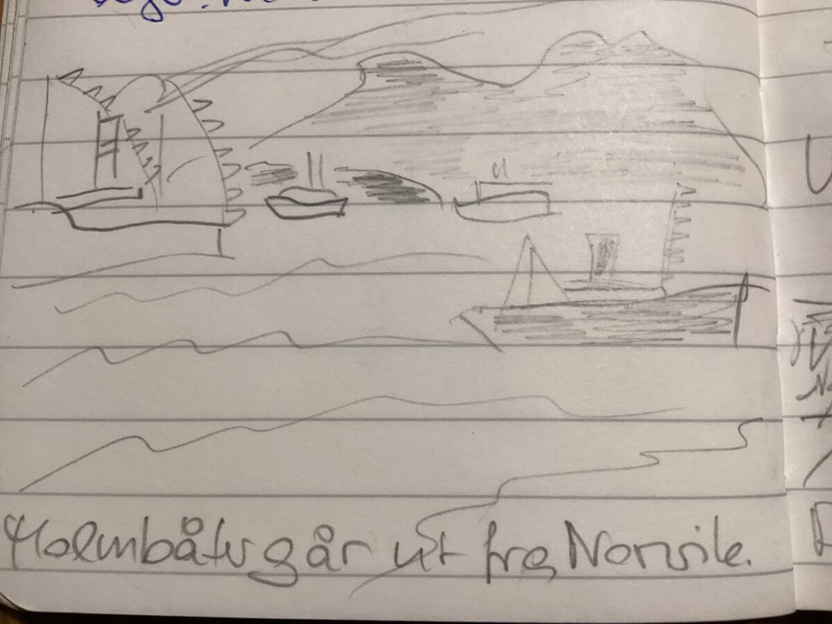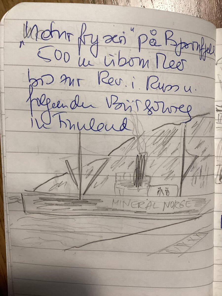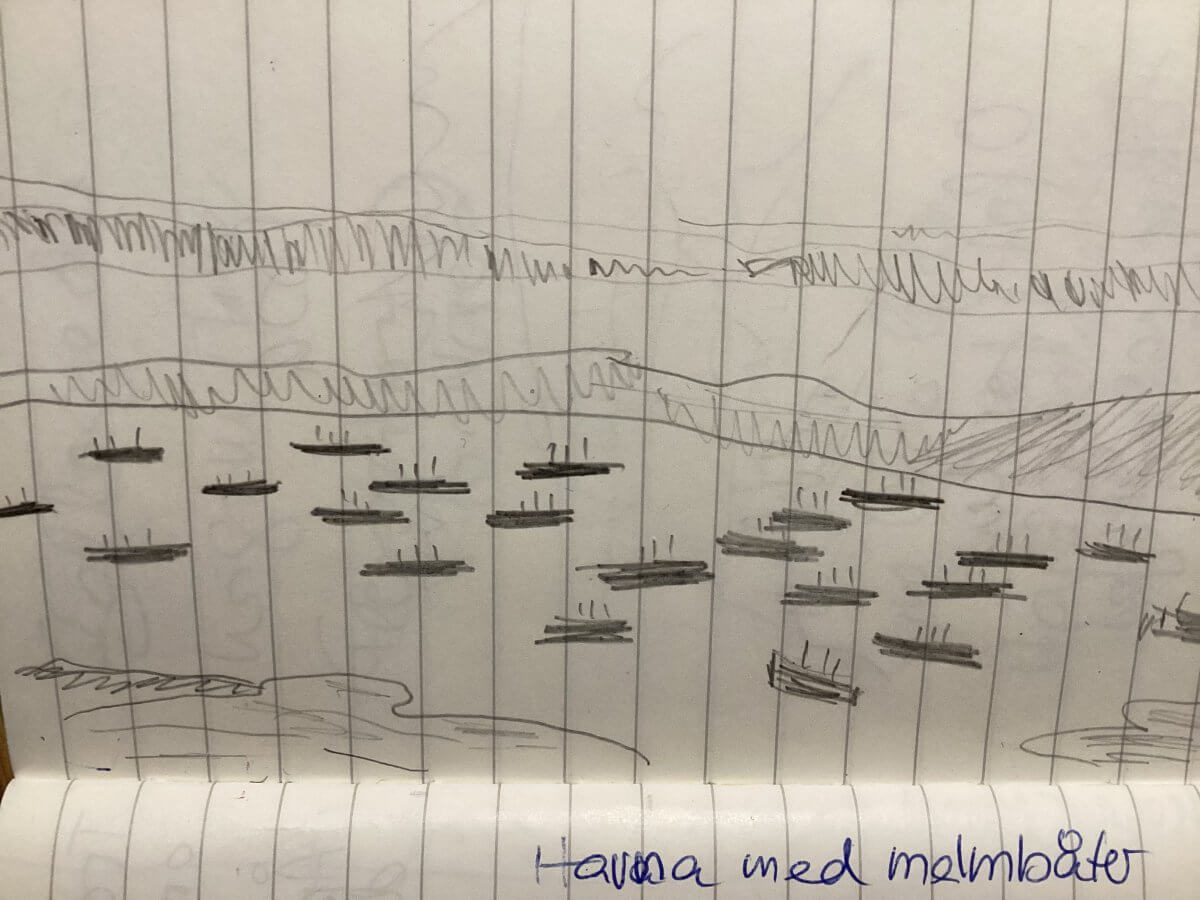 dass im Zuge von „krigskonjunkturen“ – der damaligen Kriegskonjunktur – Erz und Kies als kriegswichtige Waren mit malmbåter, Erzschiffen, bis nach Rotterdam gebracht wurden; 1914 auf dem Bahnhof von Narvik viel mehr los war als 110 Jahre später,