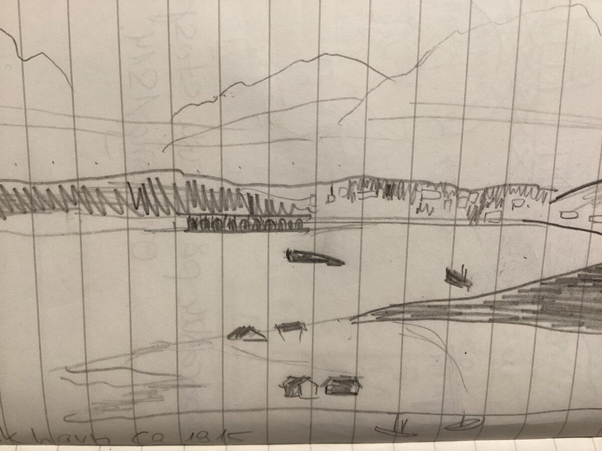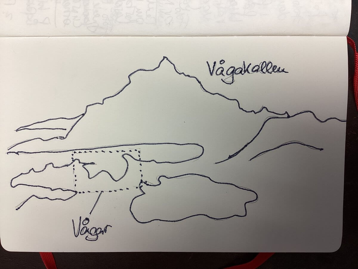 Der alte Name von Kabelvåg war Vágar (Vågar – Vágar i Hålogaland heißt der diesbezügliche Artikel auf wikipedia.no). Es bestand aus drei wichtigen Buchten (våger): Storvågan, Kabelvåg og Kirkevågen (Kjerkevågen). Und ich machte mir – bar nahezu jedes räumlichen Denkvermögens – bevor wir am nächsten Tag in diese traditionsreiche Gegend aufbrechen, schon mal voller Vorfreude so meine topo- bzw. geographischen Gedankenskizzen: