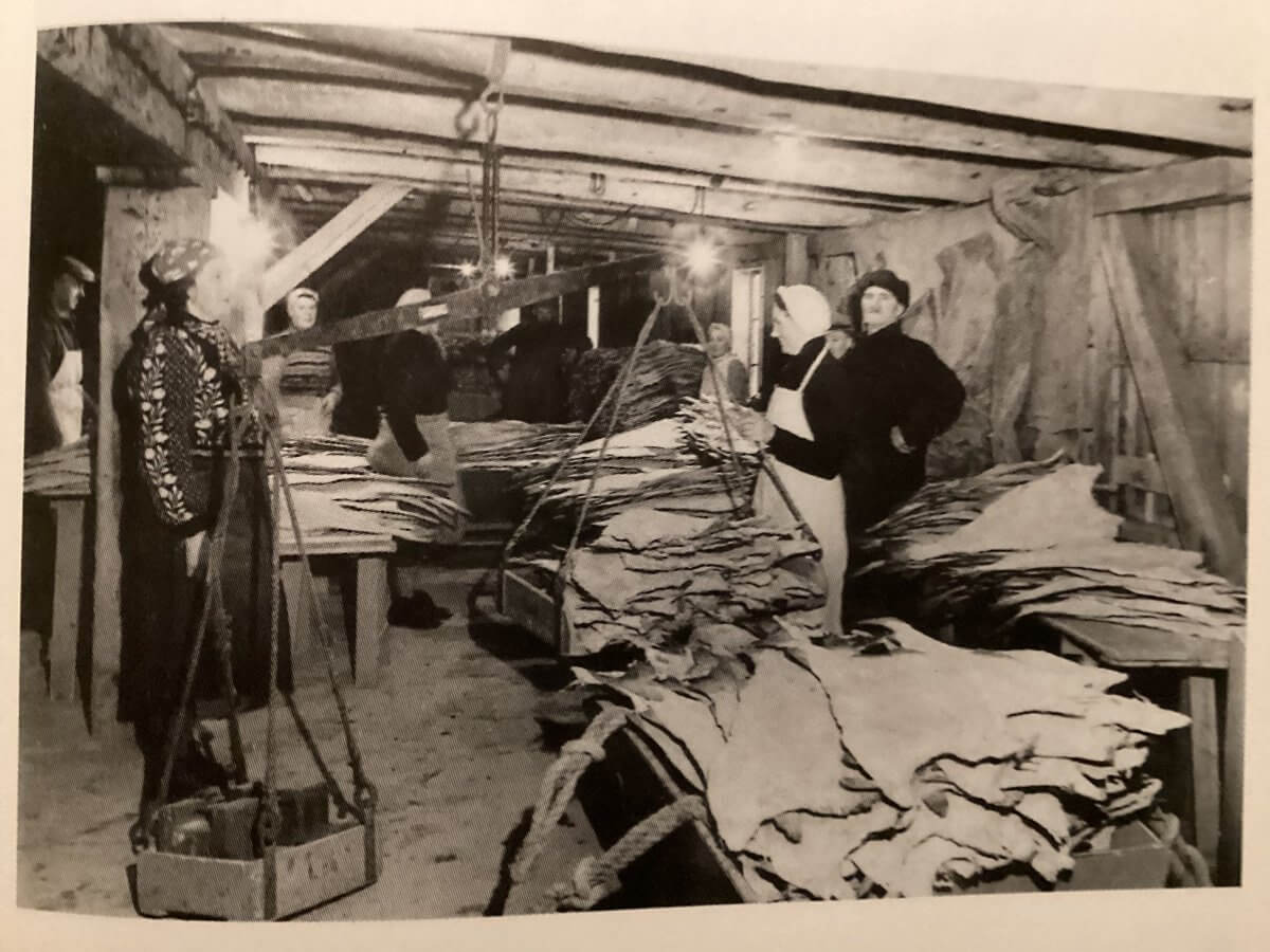 Auf diesem Foto aus Fiskarbonden og andre Kvinnfolk, einer Dokumentation über Leben und Arbeiten von Fischer-Kleinbäuerinnen und anderer Frauen in der Region Lofoten in den 1950ern und 1960ern vom Dokumentasjonssenteret for kystkvinnekultur, ebenfalls locker übersetzt: Küstenfrauenkultur, wird der tørrfisk, das getrocknete Rohmaterial unter anderem für die Zubereitung von lutefisk, gewogen.