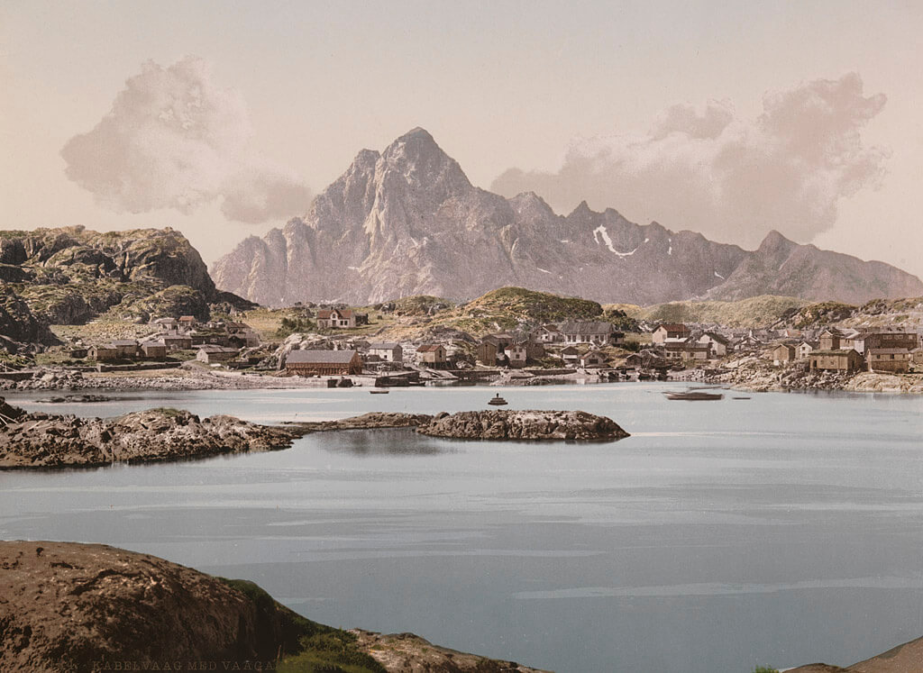 Und so lichtete es ein/e unbekannte/r Fotograf*in den Berg hinter Kabelvåg zur Wende des 19. ins 20. Jahrhundert ab: