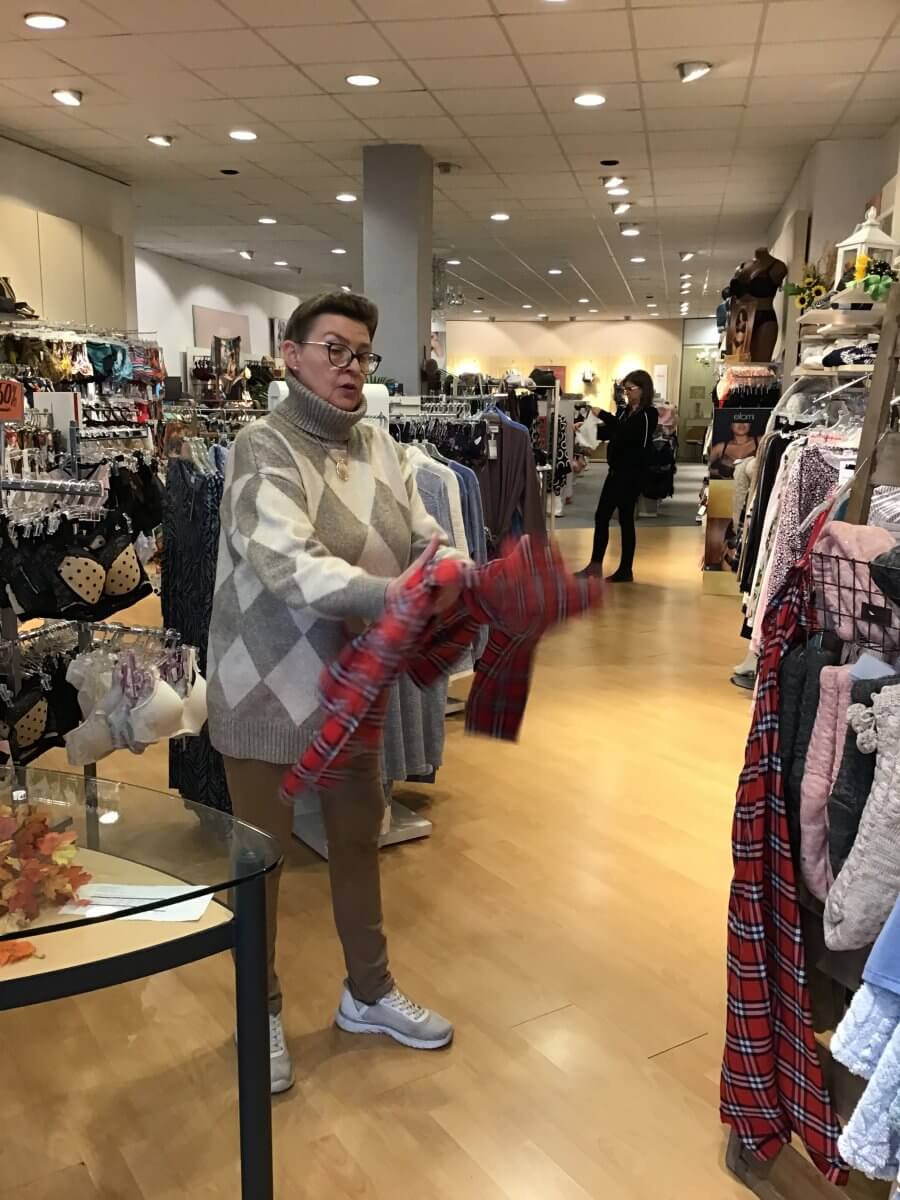 Nun sitzt Torkuhl am Mühlendamm, und ich werde so dermaßen zufriedenstellend beraten und bedient. Rettet die Fachgeschäfte! Um dieses mache ich mir keine Sorgen, Frau Schulz erzählt mir, dass sogar Menschen aus der Schweiz den Einkauf bei ihnen in Lübeck in ihre Urlaubsplanung aufnehmen, und dass sie – noch ein Alleinstellungsmerkmal – ganzjährig Bademode verkaufen, aber von Vielen der Start des „großen Badesortiments“ im Februar (!) als Event wahrgenommen wird. Ich erfahre zudem, dass die Mitarbeiter*innen für jede nützliche Hinweise auf Lager haben, aber keine Ware (what you see is what you get), und dass sie jedes Teil selbst und eigenhändig auswählen. Für meinen Bedarf empfiehlt sie eine alte deutsche Firma (die Anita Dr. Helbig GmbH gibt es seit 1886), die sich entschieden hat, auf Kunststoff weitgehend zu verzichten. Und neben bewährten Modellen auch schön nützliche neue Kreationen hervorbringt. Es gibt bei Torkuhl auch aus Meeresmüll recycelte Bademäntel.