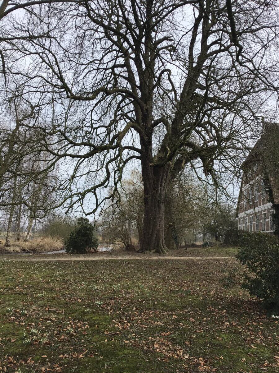 Und schon sind wir wieder bei den Commons: Der Begriff kommt vom lateinischen Wort communis, das gemein-, bzw. gemeinsam bedeutet, und bezeichnet Ressourcen wie Nahrung, Energiequellen, Land, die aus selbstorganisierten Prozessen des gemeinsamen bedürfnisorientierten Produzierens, Verwaltens, Pflegens und/oder Nutzens, dem Commoning, hervorgehen. Und so ein Commoning gab es wohl auf der Ohe. Die Allmende der drei historischen Ohehöfe war ein Hütewald, auch Hude- oder Hutewald genannt, ein Wald, der auch oder ausschließlich oder auch zur Viehhaltung genutzt wird. Im offenen Wald auf der Ohe weideten Pferde, Rinder und Schweine, er war geprägt von Stieleichen, Eschen und Erlen. Noch heute befinden sich auf dem Gelände von Hof Eggers 300- bis 400-jährige Solitäreichen. Altbauer Georg Eggers verweist auch auf das Elbholz auf dem Höhbeck, eine Geestinsel die sich bis zu 76 Meter über der niedersächsischen Elbtalaue erhebt. Im ehemaligen Hudewald dort seien noch elf Solitärbäume erhalten, Eichen und Ulmen im Alter von bis zu 600 Jahren.