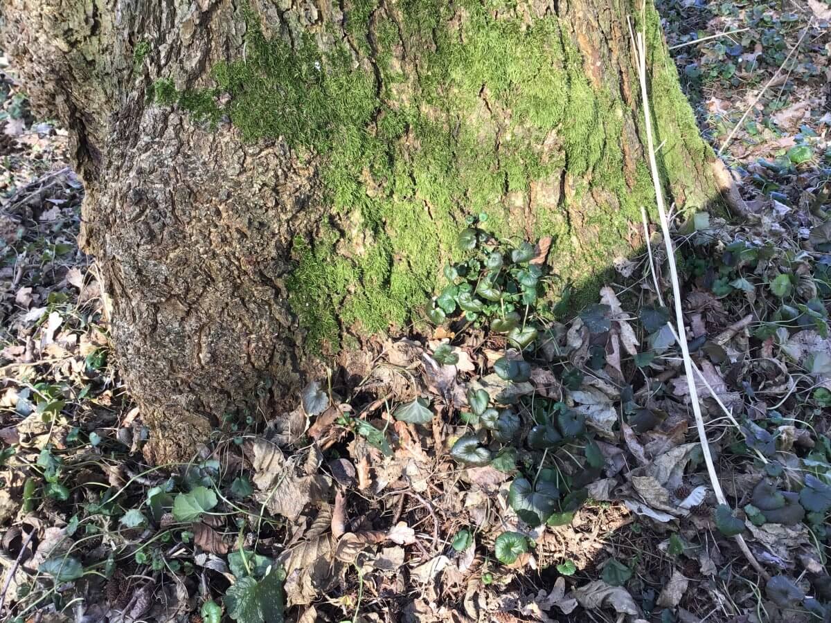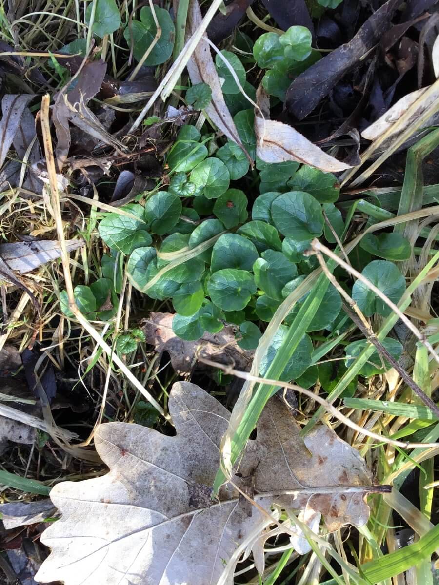 Die glänzenden glatten rundlichen Blätter gehören zum ersten Scharbockskraut (Ranunculus ficaria) dieses Jahres. Zu den Zeiten der ersten Ritterleut und Burgfrauen hätte sich jede*r drauf gestürzt, wo doch über den Winter ohne Importwaren und Tiefkühlkost die Vitamine recht knapp wurden.