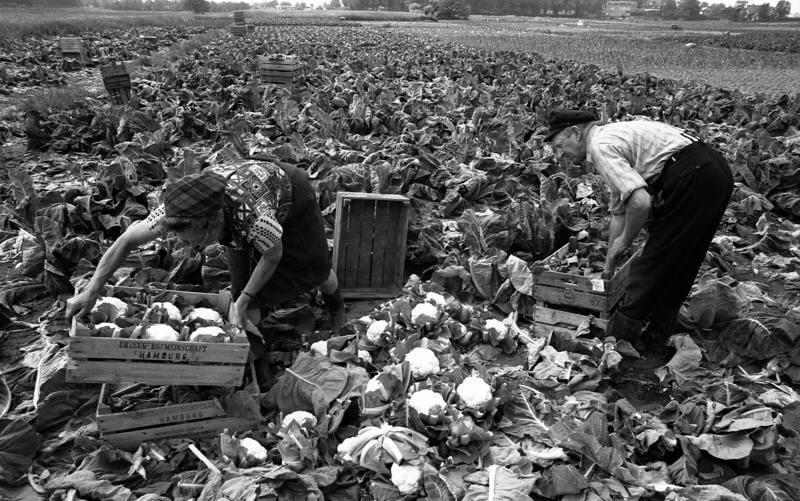 Durch ihre „klebrigen“ Marschböden sind auch die Hamburger Marschlande (eine doppelreihige „Perlenkette“ von acht Hamburger Stadtteilen) ein ausnehmend gutes Gemüseanbaugebiet, Gemüseanbau in den Marschlanden 1974