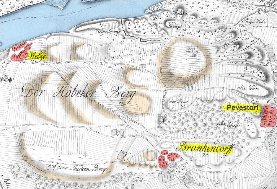 Der Höhbeck auf der Kurhannoverschen Landesaufnahme von 1776: rechts außen ist ein wichtiger Ort meiner späten Jugend eingezeichnet: Pevestorf