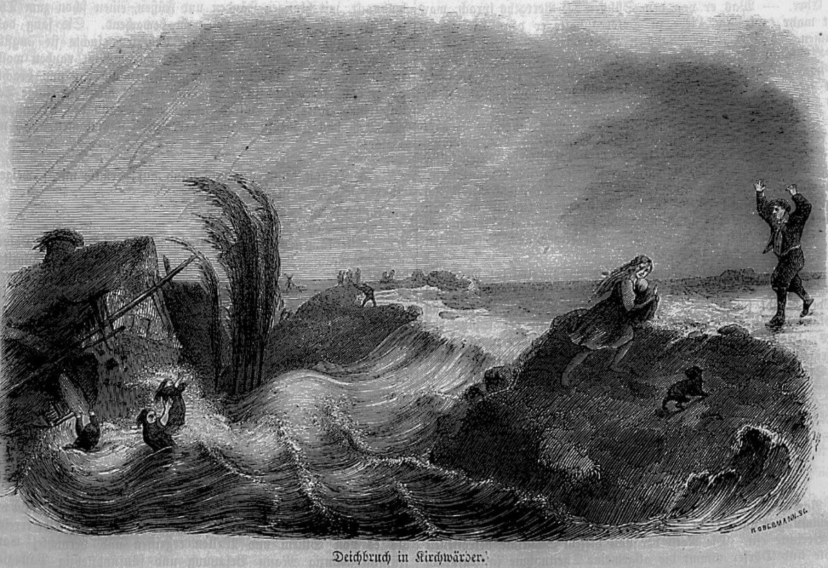 Deichbruch in Kirchwerder, Die Gartenlaube 1855