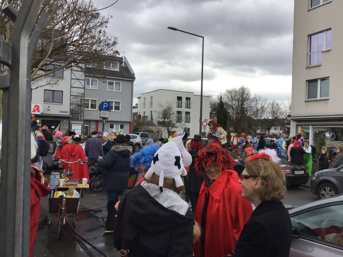 krieche Donnerstag den 27. – 12:11 (11:11 haben wir nicht geschafft und daher den dortigen Auftritt von Kölns diesjährigem schwulen Dreigestirn versäumt) – Hermeskeiler Platz/Sülz/Köln –