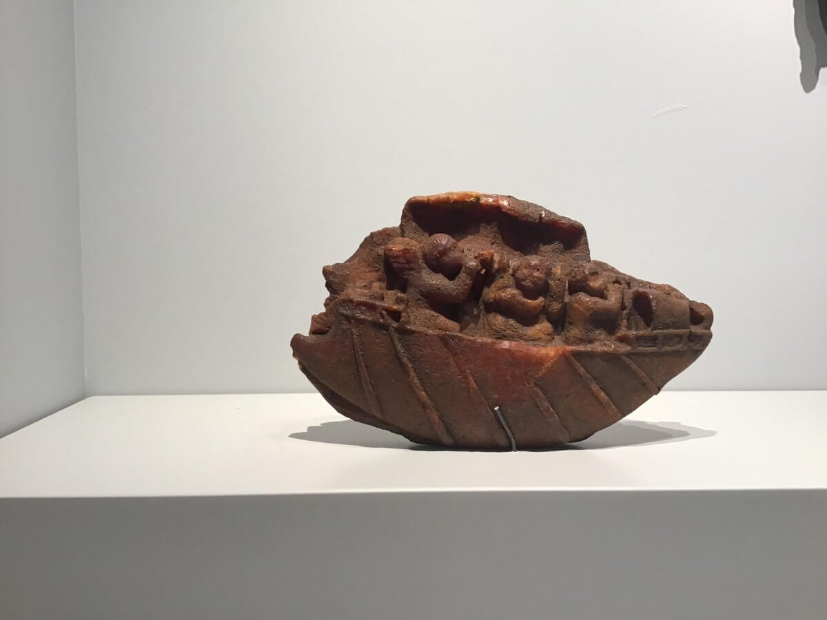 Und dann entdecke ich unter den ausquartierten Ausstellungsstücken des Römisch-Germanischen Museums etwas, das mich sehr an die Lektüre über die Ursprünge des Karnevals erinnert. Dieses Schiff aus Bernstein habe drei musizierende göttliche Wesen an Bord.