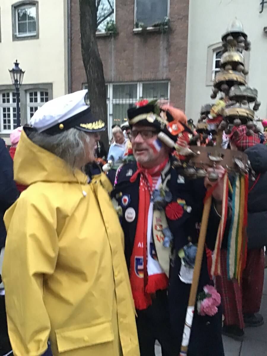 krieche heißt in der kölschen Sprok weinen und ich weine bei diesem Straßenkarneval der alten Art, als die Blaskapelle spielt, als die Tanzgruppen alles geben und mir jemand vorsichtig den Arm zum Schunkeln einlädt. Kann mir das nur so erklären, dass ich mütterlicherseits rheinische Wurzeln habe, mein Urgroßvater, Mühlenbauer im Zarenreich, hieß Poetschke und diese Familie stammt aus dem Rheinland. Meine Oma Maria Poetschke (verheiratete und nach dem zweiten der Kriege, die sie erlebte, getrennt lebende Holub) war echt stark, hat zwei Revolutionen, zwei Heimatvertreibungen, zwei Weltkriege und jede Menge Migration überlebt, und nah am Wasser gebaut. Das schließt sich ja auch gar nicht aus, im Gegenteil. Aber bevor es bei mir an diesem Weiberfastnachts-Donnerstag zum Gefühlsausbruch kommt, müssen wir erstmal ein wenig rumwühlen: