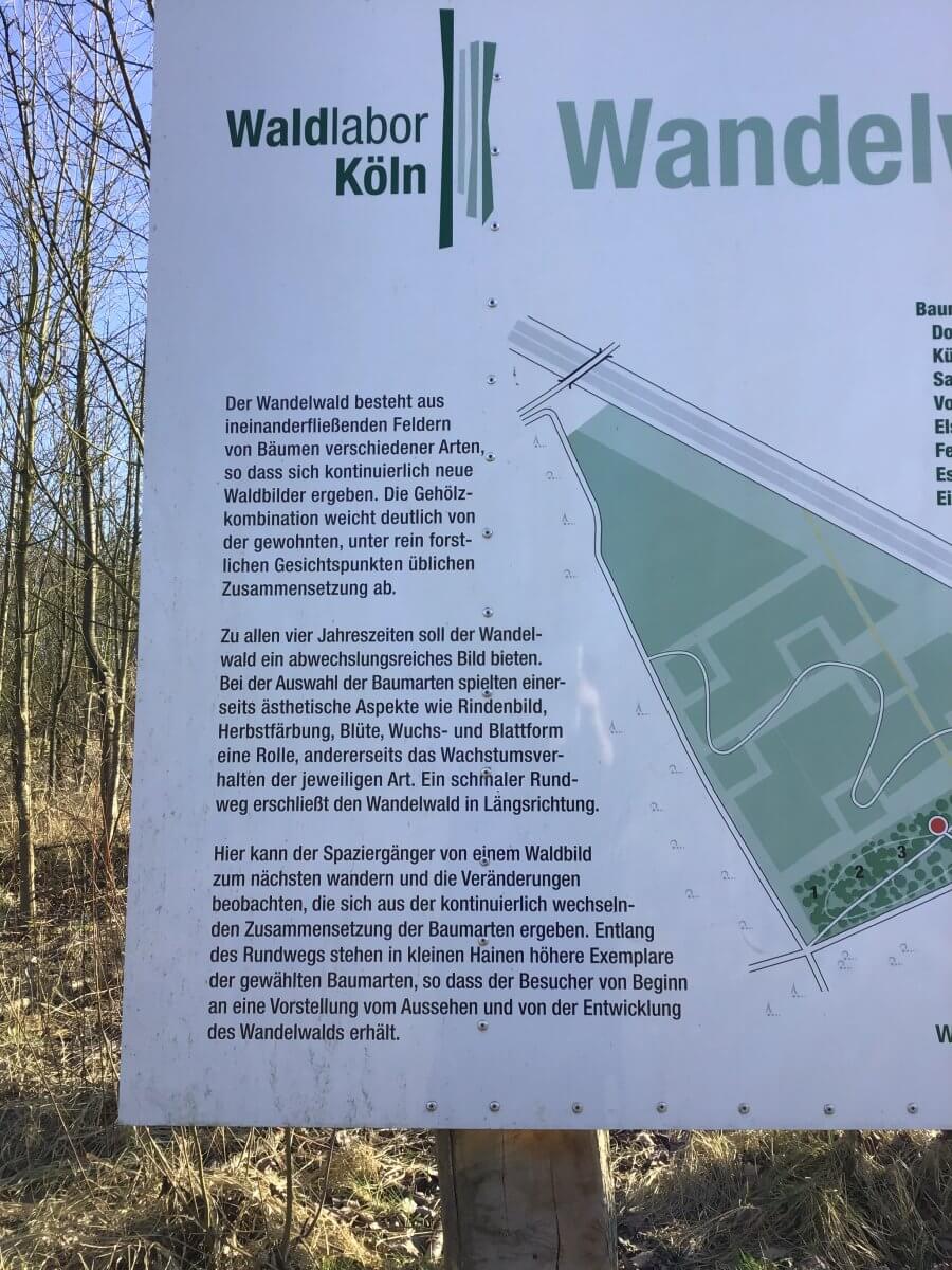 Der Website http://koeln-waldlabor.de entnehme ich: „Das Waldlabor vermittelt auch vielfältige Aspekte der biologischen Vielfalt. Im Rahmen des Klimawaldes werden Baumarten getestet, die zum Aufbau klimastabiler Wälder verwendet werden können, um heimische Waldökosysteme zu stabilisieren. Bei der Baumartenwahl wurden seltene heimische Baumarten wie die Elsbeere und Flaumeiche berücksichtigt, deren Verwendung im Wald der Zukunft empfohlen wird. Mit dem Energiewald wird beispielhaft gezeigt, wie solche Produktionsflächen in eine urbane Erholungslandschaft eingebunden werden können und gleichzeitig die Biodiversität verbessert wird. Die Kombination von auf Dauer angelegten Waldflächen mit extensiv genutzten Wiesenflächen, in enger Verbindung mit dem Energiewald, bietet einen abwechslungsreichen Landschaftsraum für Pflanzen und Tiere. Der Wildniswald zeigt, wie sich Natur ohne Pflegeeingriffe entwickelt und ist ein Beispiel dafür wie Wildnis zur Verbesserung der biologischen Vielfalt in der Stadt beitragen kann.“ Und feiere das Gestrüpp. Unordnung fördert Vielfalt!