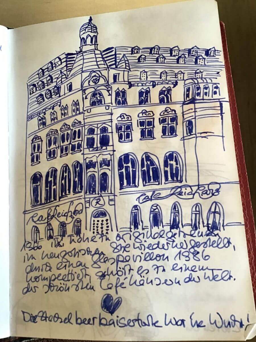1905 zog es um und wurde 1966 nach der Zerstörung nahezu aller Gebäude um den Dom herum (siehe oben) nahezu originalgetreu wiederhergestellt. Es gilt als eines der schönsten Caféhäuser der Welt und ich mal dann mal was ab: