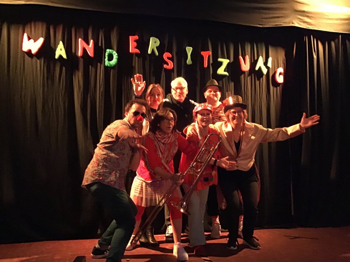 Ich gerate sofort ins Rocken, Schunkeln und blicke in lauter entspannte, lachende Gesichter. Sogar der Tod guckt freundlich aus der Wäsche.