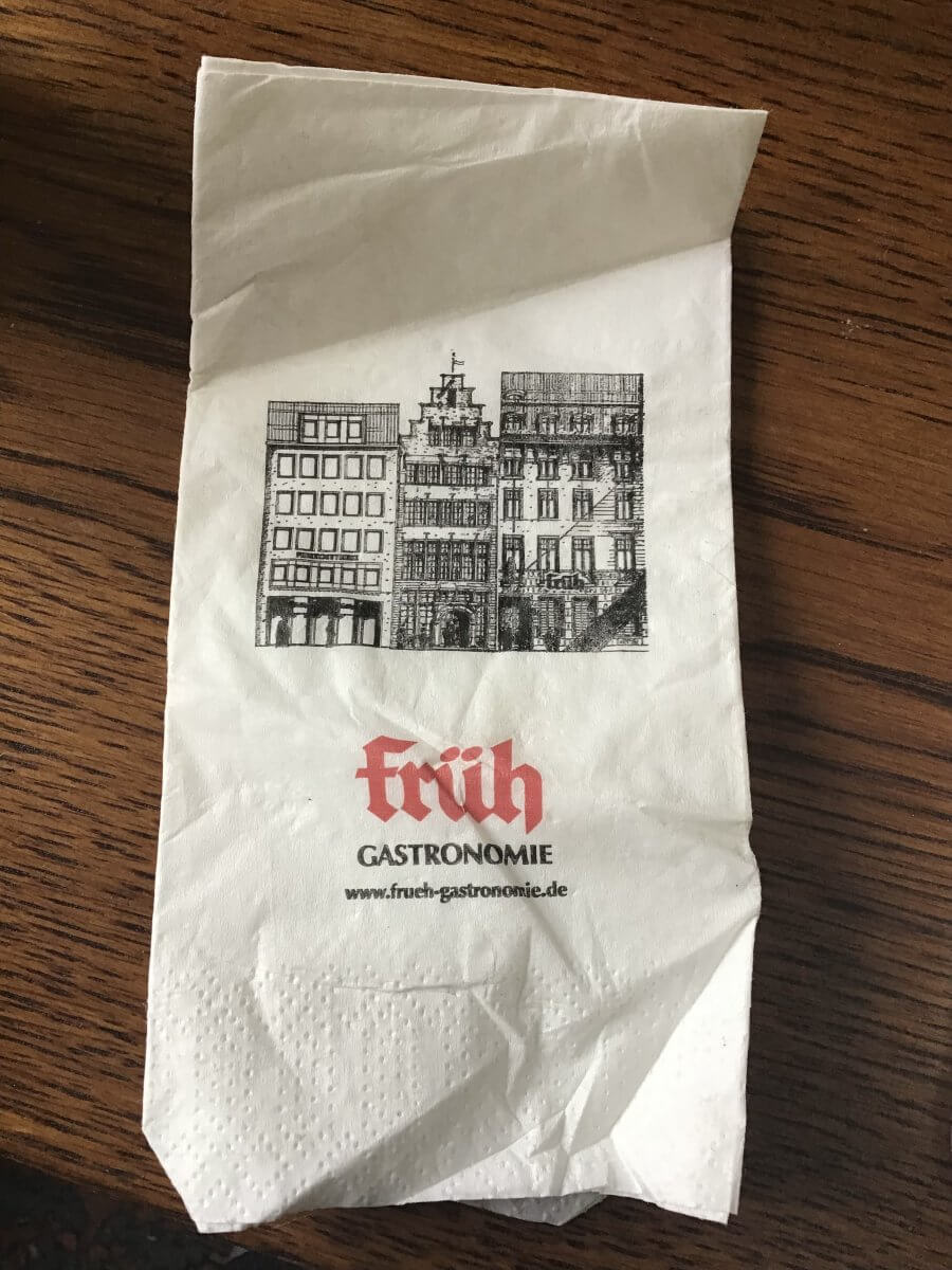 Nach der höchsten und leckersten Stachelbeerbaisertorte meines Lebens pilgere ich zum Früh am Dom. Da hat vor 35 Jahren meine große Liebe angefangen, die Liebe zur meistbesungenen Stadt der Welt. Ich hab das seither auch: „Kölle is en Jefööl“. Beim Früh herrscht kein Fachkräftemangel, hab selten fachkundigere Kellner erlebt.