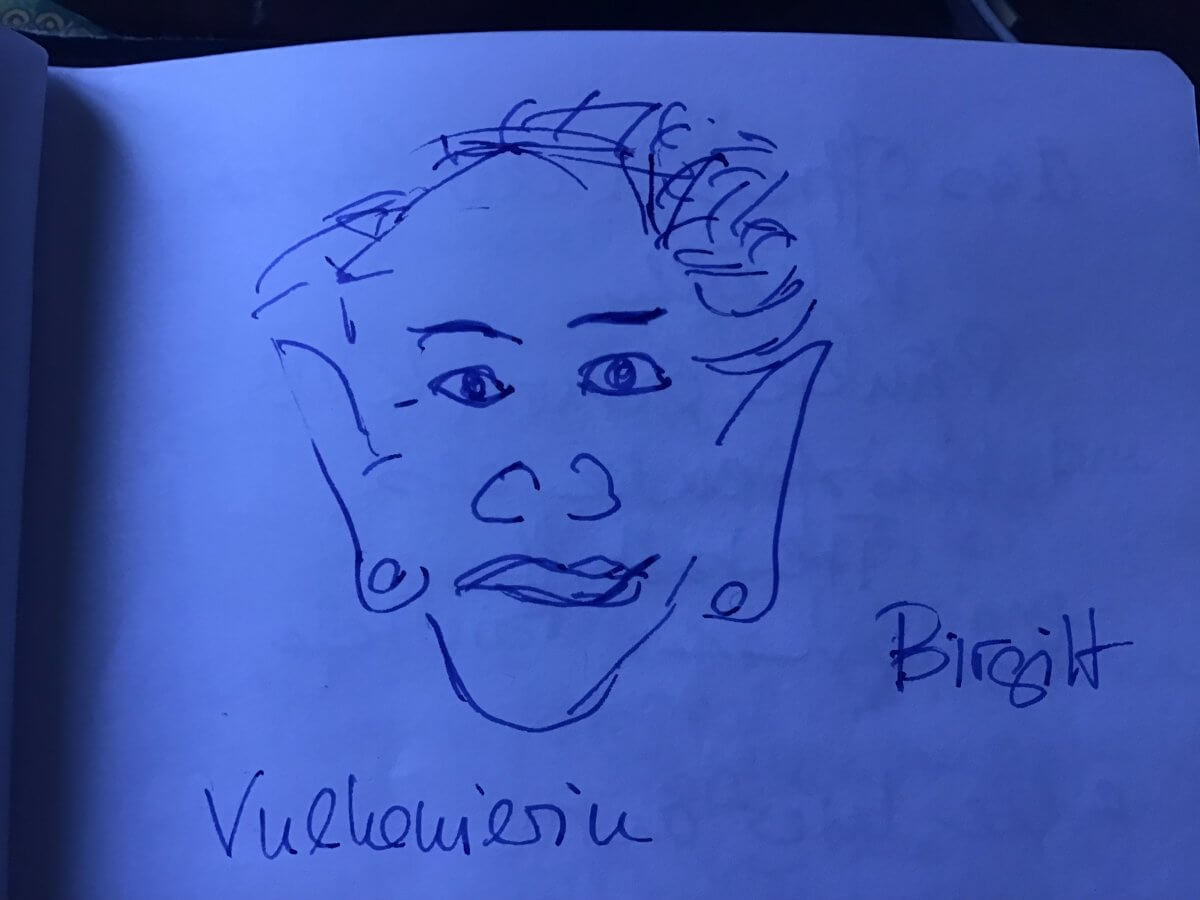 Dann pilgere ich zu einem weiteren Kultort, zum Haus am See. Wo ich bei weit geöffnetem Fenster stundenlang im Glashaus sitzen und schreiben darf. Um mich herum tobt jede Menge Leben. Nebenan sitzt plötzlich der, der mich am Rande des Wandelwaldes gefragt hat, ob ich mich verirrt habe. Hatte ich nicht, aber jetzt hab ich eine Frage: Wie komme ich zum ICZ in der Zülpicher Straße, an einem Tag, an dem auf der Zülpicher nichts fährt, weil da die Student*innen zu feiern pflegen? Hassan hilft. Ich darf ins Auto steigen und so wird die schwarzgewandete weiße Magierin in einem großen weißen Wagen vorgefahren, beim Internationalen Caritas Zentrum, zur Wandersitzung.