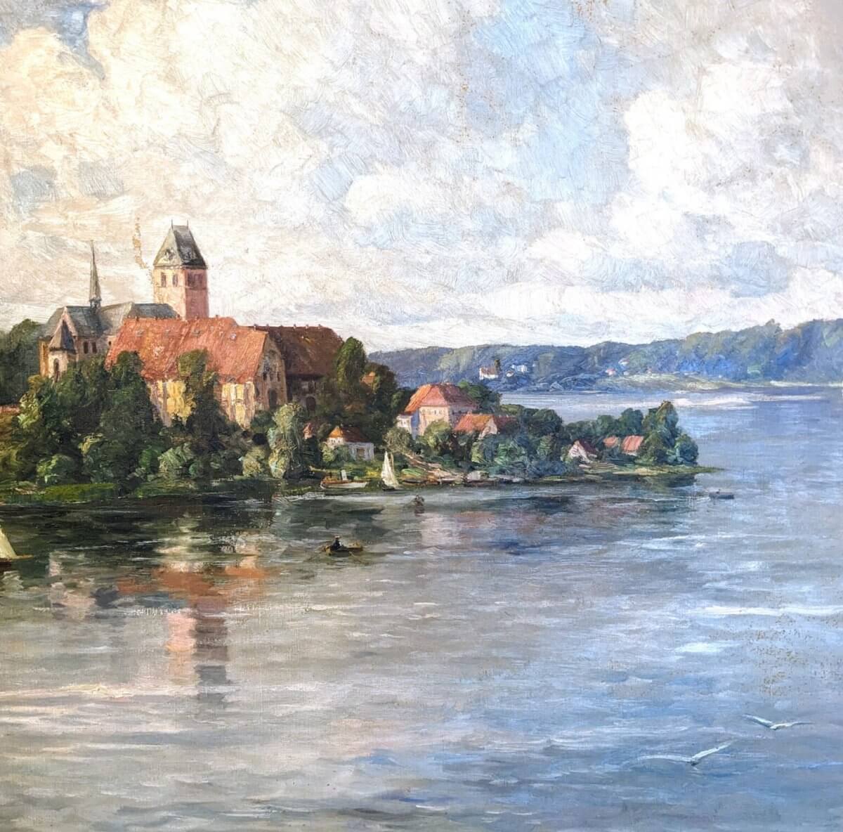 „Diese Insel ist mit einem ziemlich regelmäßig angelegten Städtchen bebaut, welches, von fern gesehen, seiner roten Ziegeldächer wegen, erst seit gestern fertig geworden zu sein scheint. Denke dir, du sähest eine glattpolierte Schüssel, mit roten Krebsen angefüllt, den Rand mit grüner Petersilie belegt: und was du siehst, ist Ratzeburg.“ So beschrieb Johann Heinrich Campe 1785 die Stadtinsel, knapp eineinhalb Jahrhunderte später porträtierte sie Ida Giesecke.