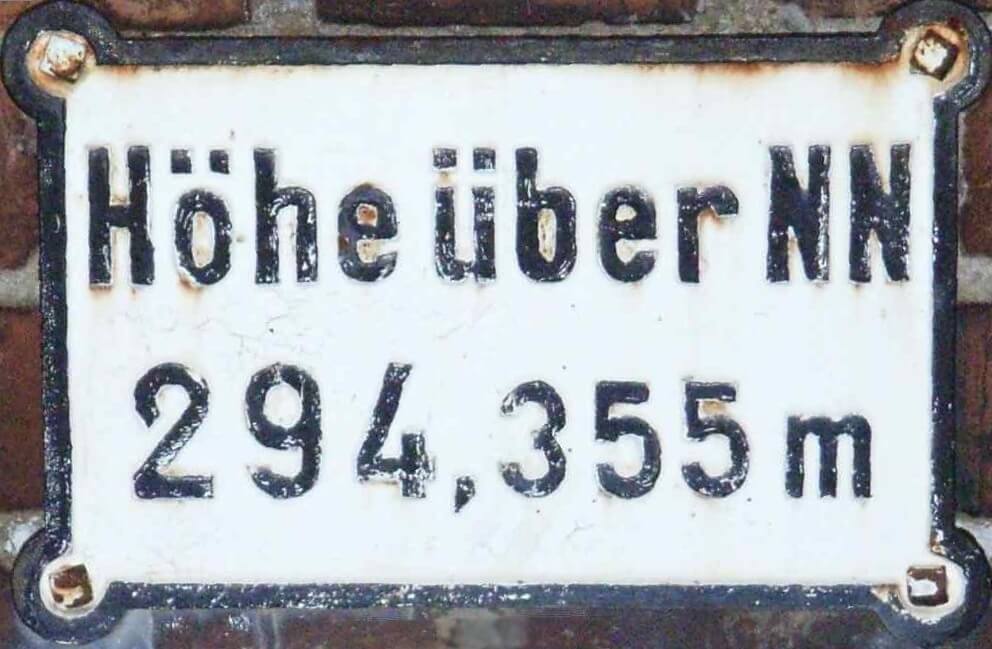Früher gab es fast an jedem deutschen Bahnhofsgebäude bahnsteigseitig einen Normalnull-Anzeiger. In der DDR galten andere Maße, beim Höhensystem der Bahn wurden die „westdeutschen“ NN-Höhen unverändert weiter verwendet; Joachim Mohr