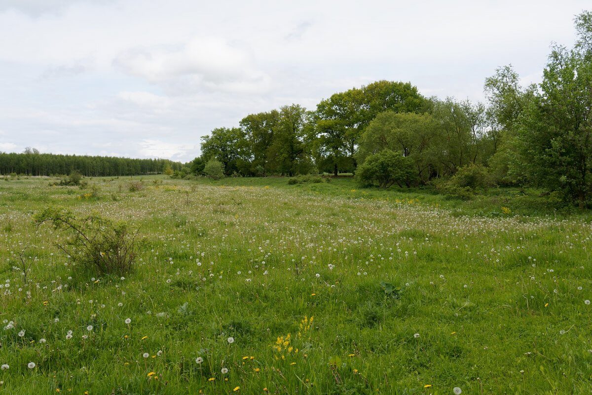 Die Ökolog*innen haben schöne Bezeichnungen. Oder wie findet ihr die Begriffe Stromtalwiese, Flutrasen oder wechselfeuchte Grünlandgesellschaft? Bei der Wiese vorm Dreiwald handelt es sich um Grünland, eine landwirtschaftliche Fläche, auf der überwiegend krautige Pflanzen – im Gegensatz zu Gehölzen solche, die nicht verholzen – angebaut werden, die als Weide für die Viehwirtschaft, als Wiese für die Mahd oder deren Mischform erhalten wird. Der noch heute bestehende Wald- beziehungsweise Offenland-Anteil ist bereits auf der Wiebekingschen Karte aus dem Jahr 1786 erkennbar.
