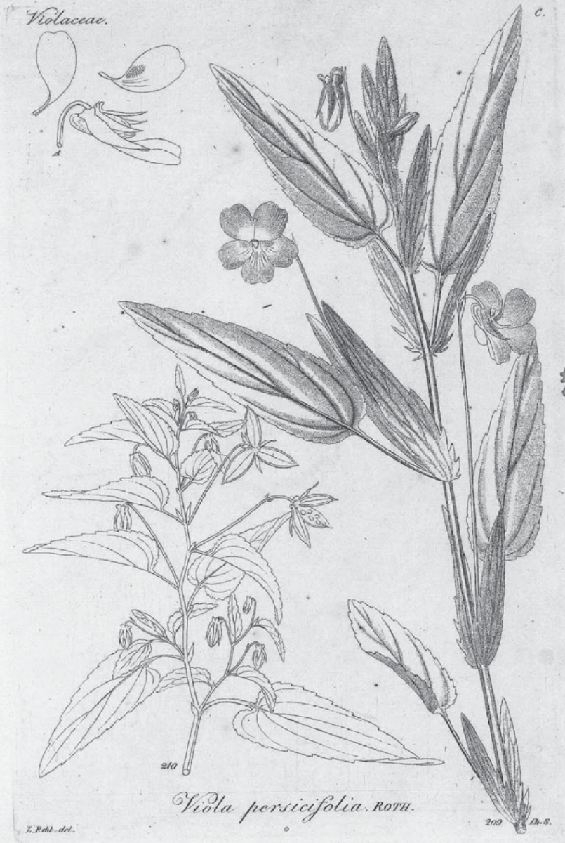 Das Graben-Veilchen, auch Moor-Veilchen, Weiher-Veilchen, Milchweißes Veilchen oder Pfirsichblättriges Veilchen genannt,(Viola stagnina oder Viola persicifolia) ist charakteristisch für die wechselfeuchte Stromtalwiese. Seine milchweißen Blütenblätter sind von lilafarbigen Adern durchzogen; 1832, Reichenbach