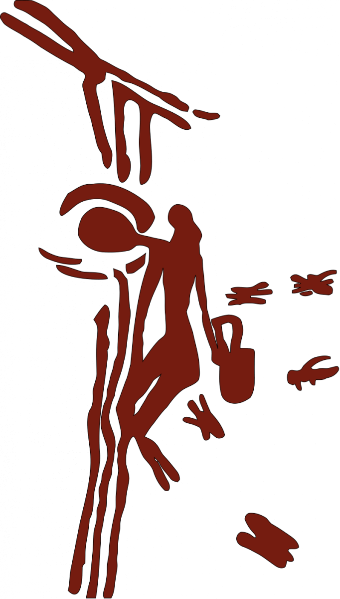Honigjägerin aus dem 10. Jahrtausend vor Christus, Höhlenmalerei der Mittelsteinzeit bei Valencia, Spanien