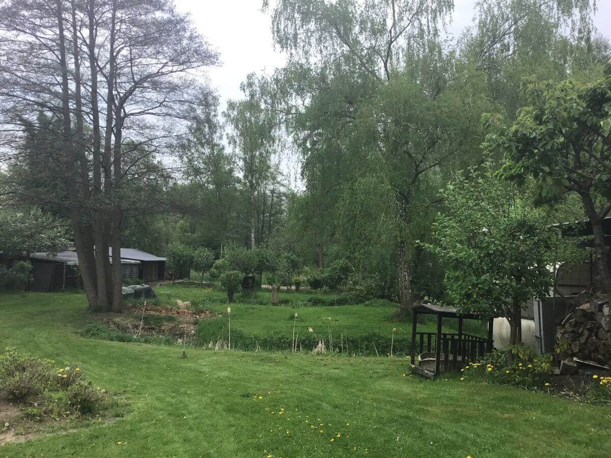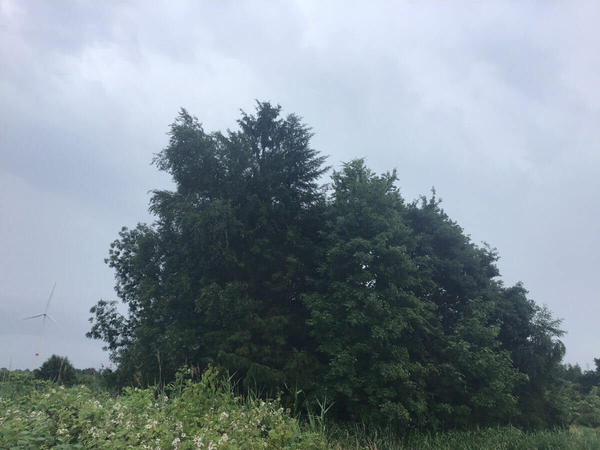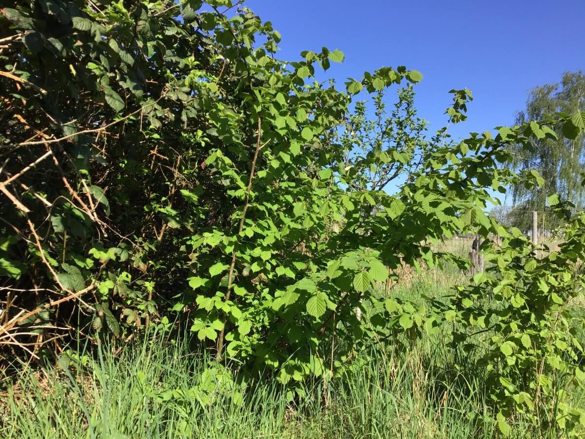Mischgehölz in der 600 Jahre alten Kulturlandschaft Vierlande, davor unser Vogel- und Insekten-Eldorado, das blühende Brombeerdickicht.