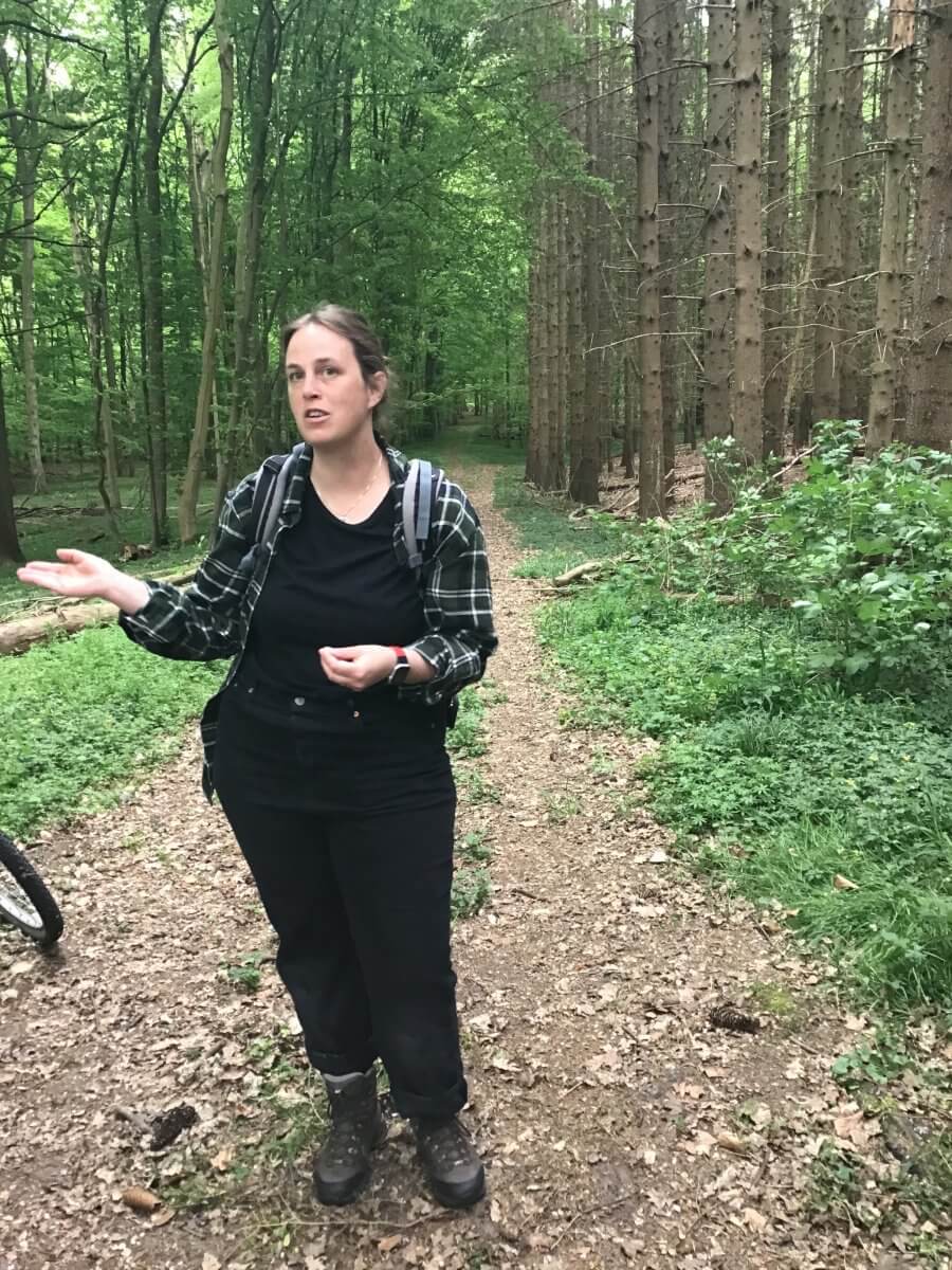 Wie ein naturnah bewirtschafteter Wald sich entwickelt, lernten wir, die wir aus verschiedenen Richtungen angeradelt kamen, von Försterin Annalena. Und kamen aus dem Staunen nicht raus.