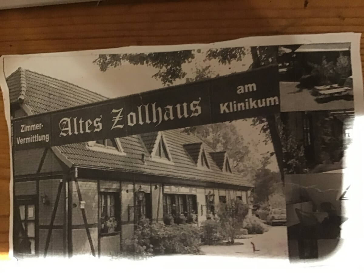 Im Alten Zollhaus, es war, bis es im Jahr 1994 einem Sturm zum Opfer fiel, Deutschlands zweitältestes, stieg auch Napoleon ab. Es steht an der Ratzeburger Landstraße 2b und gehört zu Lübeck. Hinterm Hotel führt das abschüssige Gelände vorbei an alteingewachsenen, liebevoll gepflegten Dahlien-, Rosen- und Hortensienbeeten zum Stadtkanal, der allerdings, wie Frau Schröder berichtet, kaum noch Wasser führt. Viele Gäste würden sie Verkehrsunfällen verdanken, erzählt die Hotelchefin: „Der eine schläft in der Klinik (das Universitätsklinikum ist gleich nebenan), der andere bei uns.“ Sie ist 85 Jahre alt und wie es aussieht, voll berufstätig.