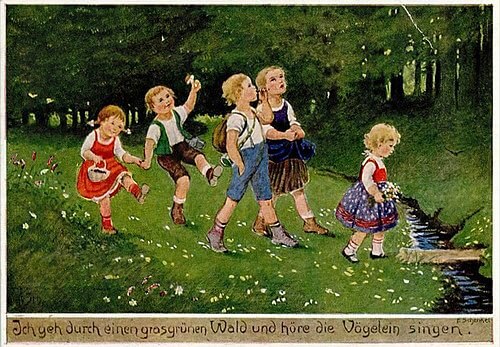 Oder motiviert euch eher ein Lied? Eichen sind „von Natur aus“ Biotopbäume, Hüterinnen der Wirtlichkeit. Im Duden steht zu diesem Wort, es sei veraltend. Ich finde es schön und zukunftsfähig, denn wirtlich sein bedeutet einladend sein. Die Eiche bewirtet Moose, Flechten, Käfer, Larven, Pilze. Beim Waldradeln singe ich gerne das alte Lied: Ich ging durch einen grasgrühünehen Wald, da hört ich die Vögelein singen, sie sangen so jung, sie sangen so alt, die kleinen Vögelein in dem Wald, die hört ich so gerne wohl singen. Diese Strophe stand schon 1574 in einem Liederbuch und 1922 auf einer Postkarte.