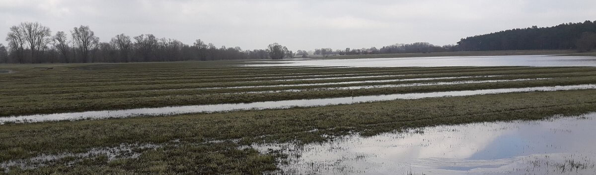 Hier zeigen die Wölbäcker bei Vietze/Höhbeck ihre Vorteile, bei Hochwasser bleibt noch Ackerfläche übrig. So war es schon im Mittelalter: In feuchten Jahren wuchs das Getreide in der Ackermitte besser, in trockenen Jahren das Getreide am Rand; Volka B. Meier