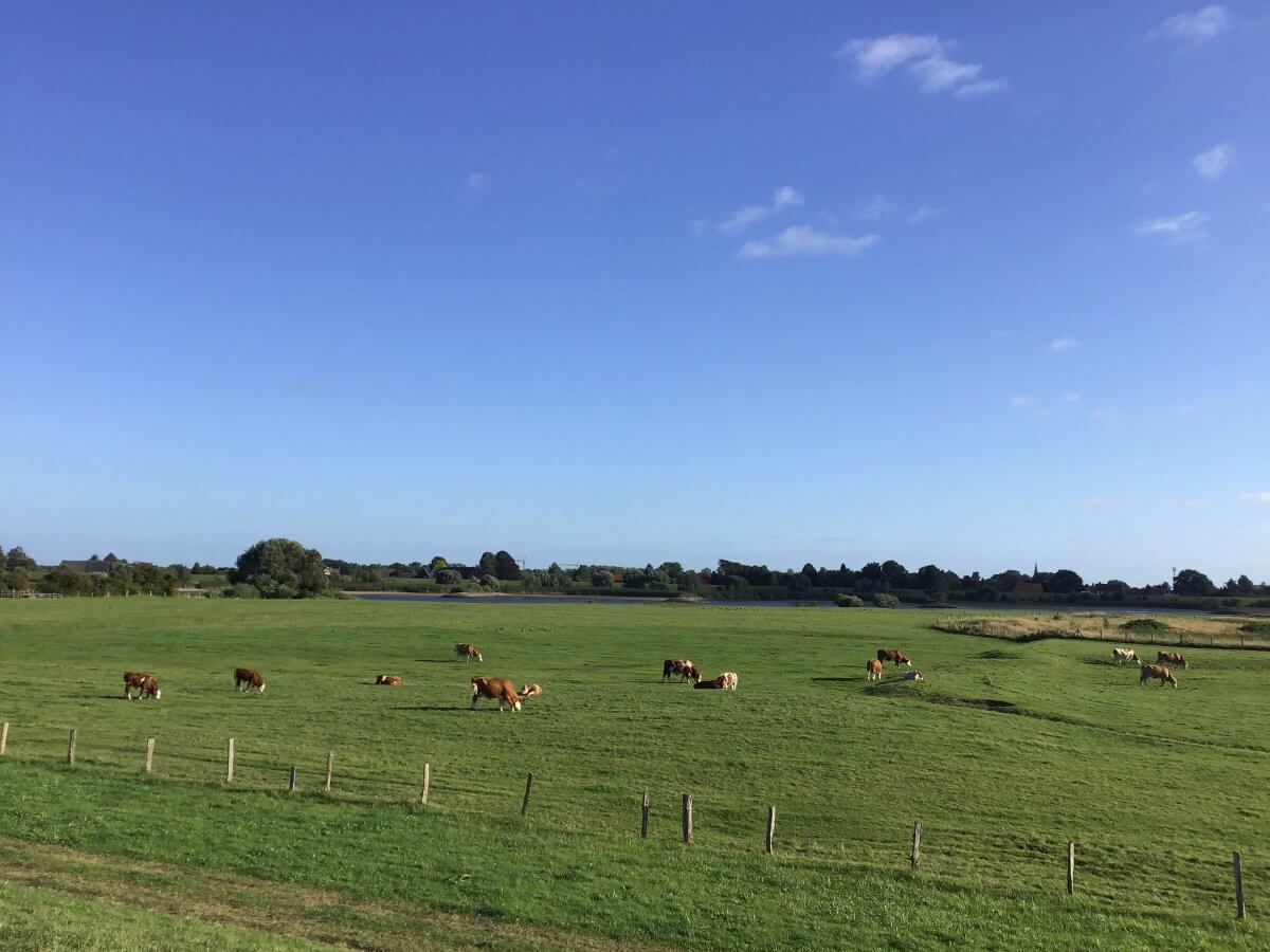 Blick auf die Altengammer Elbwiesen. Wie die Gesellschaft für ökologische Planung e.V., die auf der anderen Elbseite, an der Bunthäuser Spitze in Hamburg-Moorwerder das Elbe-Tideauenzentrum betreibt (https://www.goep.hamburg/goep), wurde in diesem Bereich wie vielerorts der Auwald gerodet, nur wenig stromtaltypische Vegetation ist übrig geblieben. Nun werden die Altengammer Elbwiesen, heute sind sie Teil des Naturschutzgebietes Borghorster Elblandschaft, als Grünland bewirtschaftet, die Nutzung soll weiter extensiver werden und im Uferbereich sollen Auwälder entstehen. Für eine intaktere Natur sei zudem, so die GOEP ein Anheben der Grabenwasserstände erforderlich.