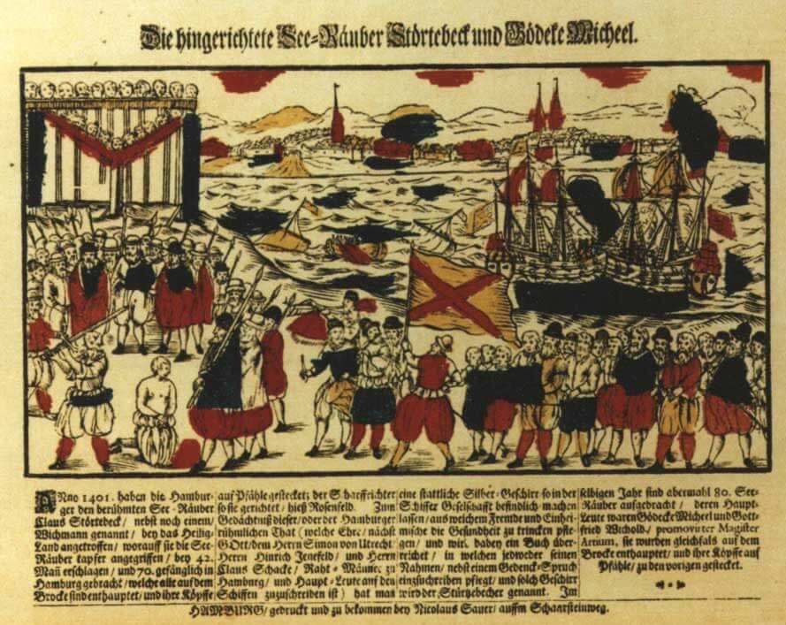 Hinrichtung der Vitalienbrüder auf dem Grasbrook in Hamburg (1401), Hamburger Staatsarchiv, r_gassenhower – Staatsarchiv Hamburg, Signatur: 720-1_241-07 = 1402.11