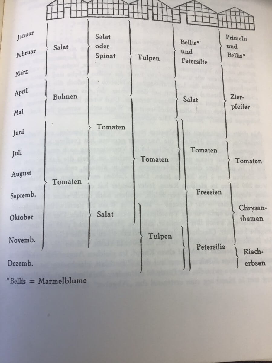 Die Erdbeere stand damals, gemessen an der Anbaufläche, vor der Tomate an der Spitze. Unten seht ihr eine Skizze aus Wills Beitrag, sie zeigt den Unterglasanbau in den 1950ern: