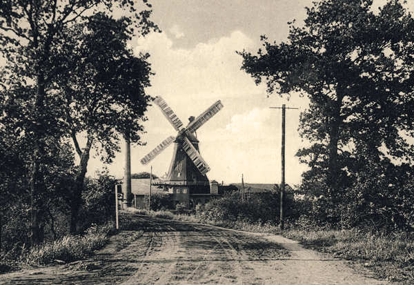 Sie heißt „Boreas“ (Das altgriechische Word Βορέας geht auf die Verehrung der Winde zurück, den winterlichen Nordwind personifizierten die Griech*innen in einem Wesen namens Boreas), ist eine der ältesten Mühlen Deutschlands, die älteste und größte Kornwindmühle in Hamburg, seit 2007 ein produzierendes technisches Denkmal, und damit eine der letzten arbeitenden Mühlen hierzulande. Da bin ich pingelig, denn mein Urgroßvater war ein überaus gewissenhafter Mühlenbauer, wenn auch in ganz anderen Landen (Gouvernement Courlande – heutiges Lettland, damaliges Zarenreich). Der auf diesem Foto noch ungepflasterte Kirchwerder Mühlendamm, auf dem wir uns lesend und schreibend in sehr altertümlichem Tempo, manchmal gar gegen eisigen Nordwind stemmend, nordwärts bewegen, war einer der ersten Verkehrswege zu Lande in den Vierlanden, wo damals fast ausschließlich zu Wasser verkehrt wurde.
