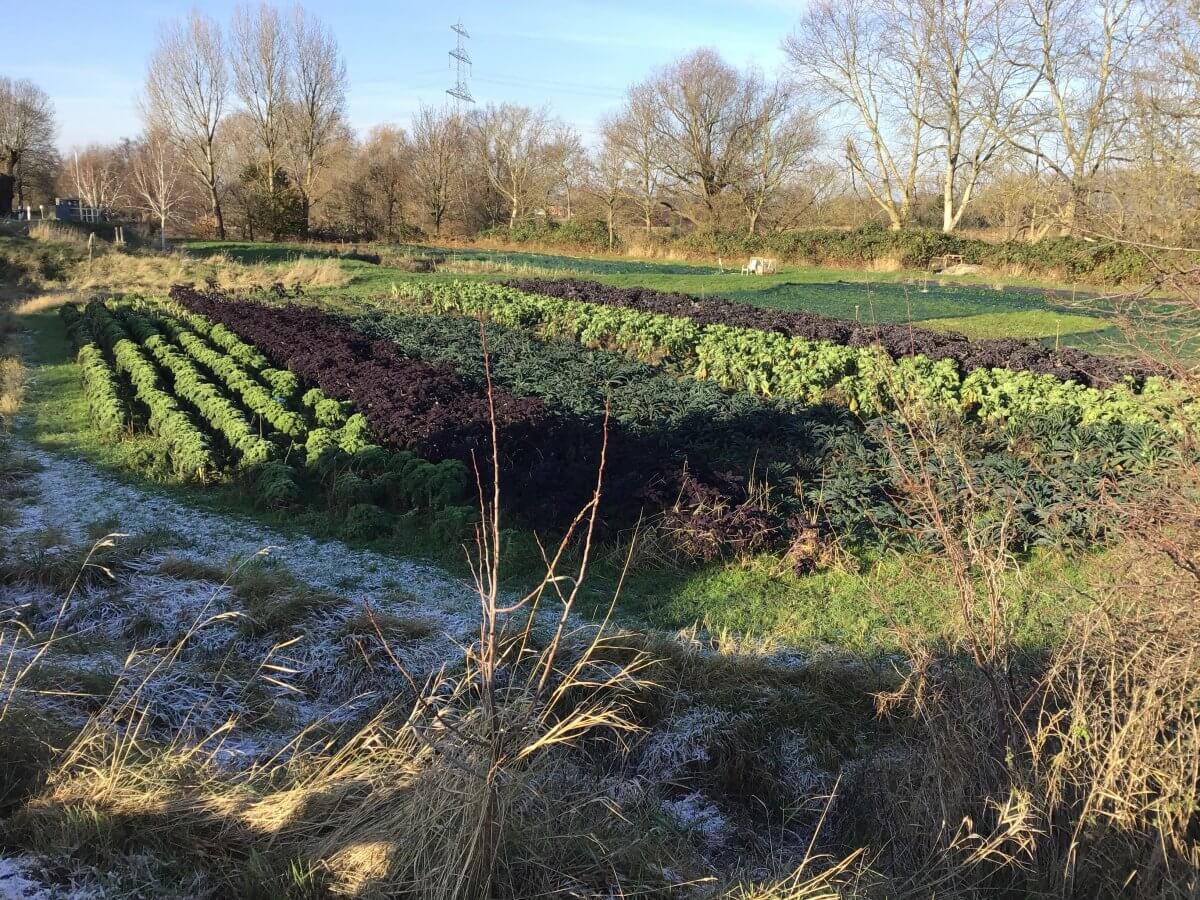 Zudem hätten, so Kittel und Stokman, der massive Preisdruck und die Konkurrenz aus dem Ausland die ansässigen Gartenbaubetriebe stark unter Druck gesetzt. „Die harte und wenig lukrative Arbeit in den kleinteilig strukturierten und familiär geführten landwirtschaftlichen und gartenbaulichen Betrieben führt obendrein dazu, dass häufig keine gesicherten Nachfolgen zu finden sind.“ Für konventionellen Anbau auf großen Flächen eigneten sich die Vier- und Marschlande mit ihrer kleinteiligen Hufenstruktur nur bedingt. Nun haben die Vier- und Marschländer*innen in der Geschichte ihre Innovationsfähigkeit oft bewiesen. Vielleicht führt das ja zu zukunftsträchtigen neuen Vertriebswegen und nachhaltigen ökologischen Anbaumethoden – Altbauer Georg Eggers spricht von „neuem altem Anbau“ und da ich ihn als Vorreiter und Vordenker betrachte, schiebe ich mal ein Bild ein (siehe unten) – im kleinen Maßstab?