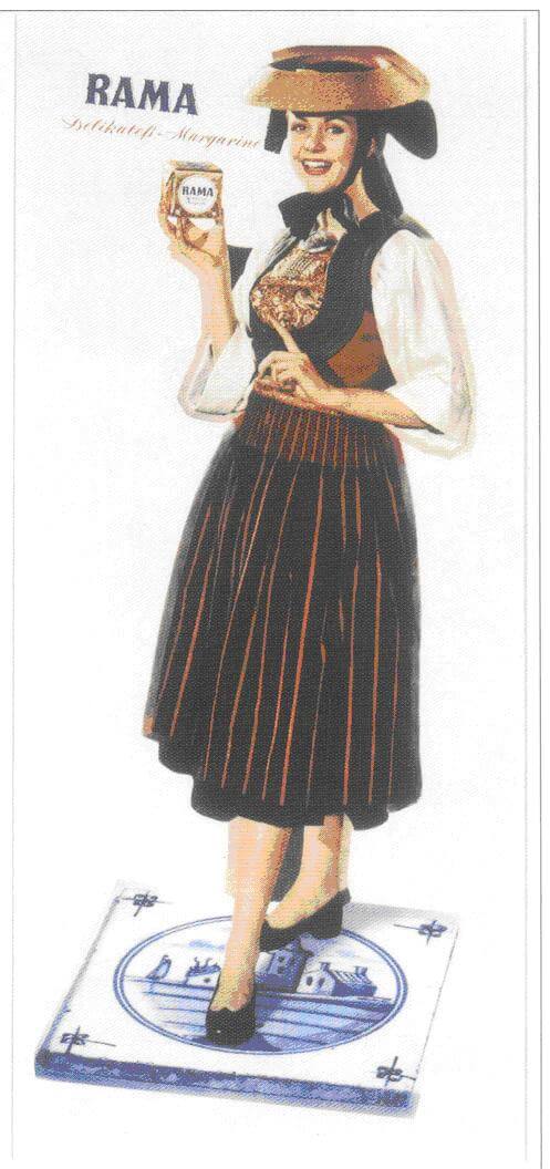 Wenn eine heute nach dieser Marke fahndet, gelangt sie zu einem dieser multinationalen Lebensmittelhersteller, die alles mögliche herstellen und auch alles mögliche gefährden, z.B. kleine bäuerliche Betriebe. Dieser Multi heißt Upfield Holdings und hortet unter seinem globalen Dach mehr als hundert Marken, inclusive Rama. Was achtsamen Leser*innen vielleicht auffällt: Die in meiner Kindheit abschätzig (Gleichstellung war im Wirtschaftswunderland mega-out) als Rama-Mädchen bezeichnete Dame trägt Vierländer Tracht (genauere Erläuterungen zu dieser Arbeitsbekleidung erhaltet ihr ein paar Absätze weiter unten).