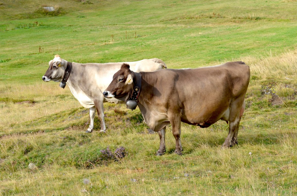 Apropos Rasse, auch Zucht genannt, (und auch apropos Weidewirtschaft, hier in den Schweizer Bergen): Das Braunvieh ist eine Zucht/Rasse mit hoher Milchleistung und geringem Milchfettgehalt, Milchwirtschaft kriegen wir später. Hier schon mal ein wenig Ernährungswissen für menschliche Wesen: Es ist wissenschaftlich belegt, dass Kühe, die im Sommer frisches Gras und im Winter Heu fressen, bessere Milch geben. Sie enthält mehr als die doppelte Menge an Omega-3-Fettsäuren, die wiederum haben sich in mehreren Studien als förderlich erwiesen für unser Lernen, unsere Wahrnehmung, Aufmerksamkeit, Erinnerung, Kreativität, Fantasie, Planen, Orientieren, Argumentieren, Problemlösen, Vorstellungskraft, unser Lernen, und last but not least: die Selbstbeobachtung. So erzeugt extensive Weidewirtschaft auch gesunde Selbstkritik und Exzellenz:) – glänzende geistige Leistungen: Brain up!