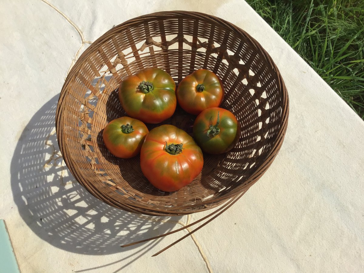 „Jeder hat bei uns damals die Vierländer Tomate in seinen Gewächshäusern angebaut. Und damals hat auch jeder sein eigenes Saatgut wieder ausgesät, wir waren ja alle etwas geizig. Darum veränderten sich die Tomaten mit der Zeit auch etwas. Manchmal waren sie schöner, manchmal waren sie nicht so schön. Wir hatten alle ein gutes Verhältnis miteinander und trafen uns auch regelmäßig mal hier und mal da. Wenn Dein Nachbar eine wirklich tolle Variation der Vierländer bei sich im Gewächshaus hatte… Na dann wurde er auch mal nachts besucht und um einige Früchte erleichtert. Im nächsten Jahr hatte ich auch die tolle Variation in meinem Gewächshaus.“ Meine oben abgebildete wirklich tolle und leckere Variante habe ich von der Straße, von einem Kräuter-, Obst- und Gemüsestand am Kirchwerder Mühlenweg. Nix wie hin! Da wirkt eine Fachfrau oder ein Fachmann.